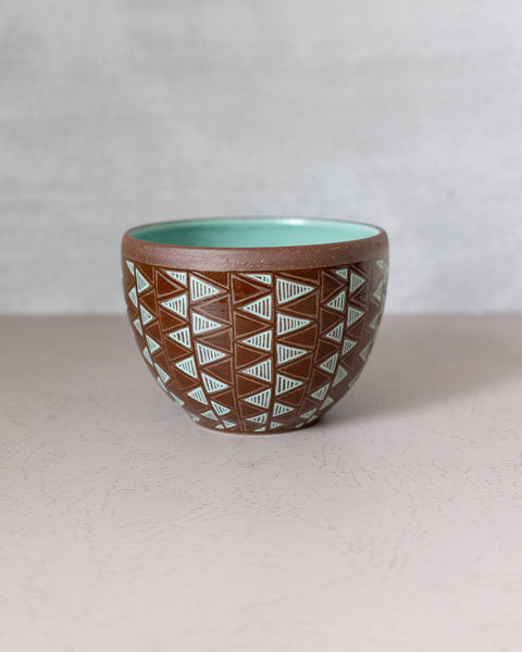 Dark Brown & Turquoise Geometric Bowl