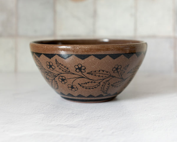 Dark Brown Botanical Bowl